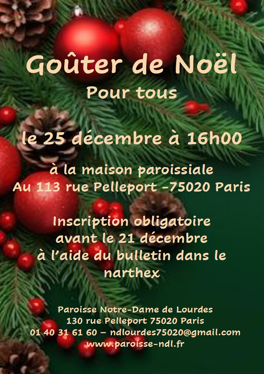 Pour proposer votre aide, contacter le Père Xavier Snoëk ou envoyez-nous vos coordonnées par mail : ndlourdes75020@gmail.com
